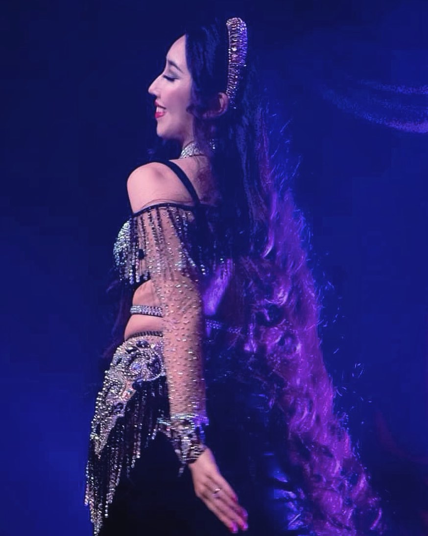 ―子供の頃からずっとロングヘアでしたが、さらに伸ばすようになったのは、ベリーダンスを踊るミシャール(@mishaal_mahari)先生に出会ってからのこと。私はずっと女子校で、母や妹、叔母…家族も女性の多いなかで育ってきましたが、先生のようにエキゾチックで現実離れした<女神のように美しい人>を見たのははじめて。一目で大きな衝撃を受けて夢中でレッスンに通い、「先生のようになりたい」と思って髪の毛も伸ばしはじめました。