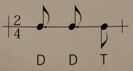T テ/タ…高い音。ダラブッカの縁を叩いたときの音。